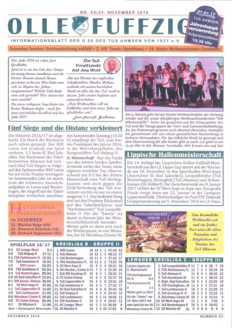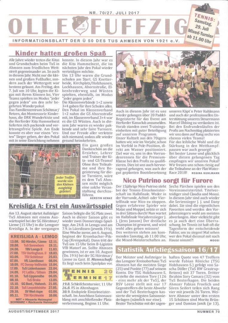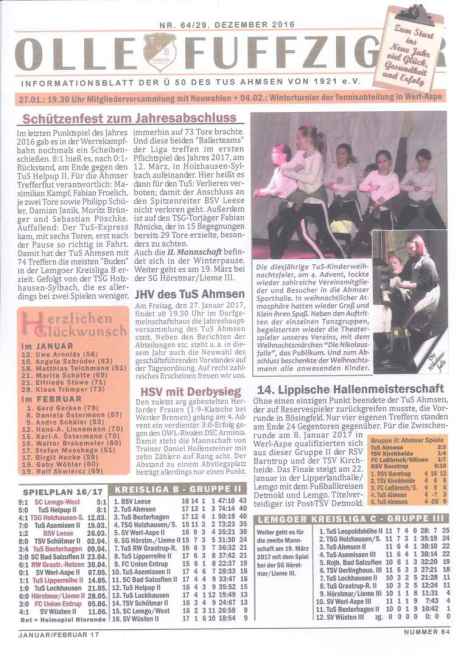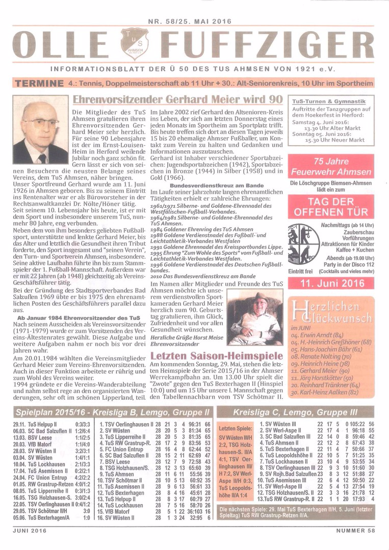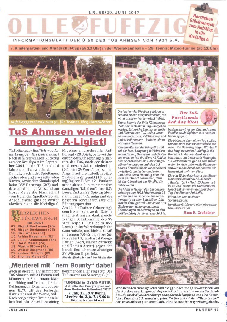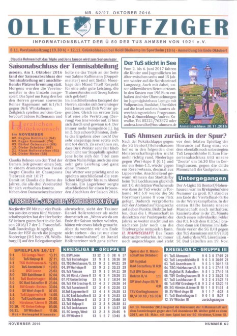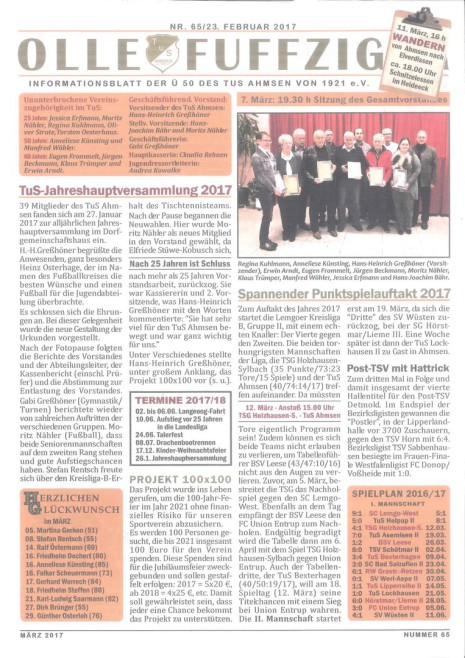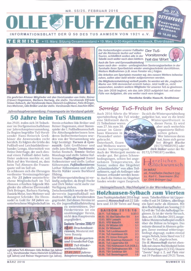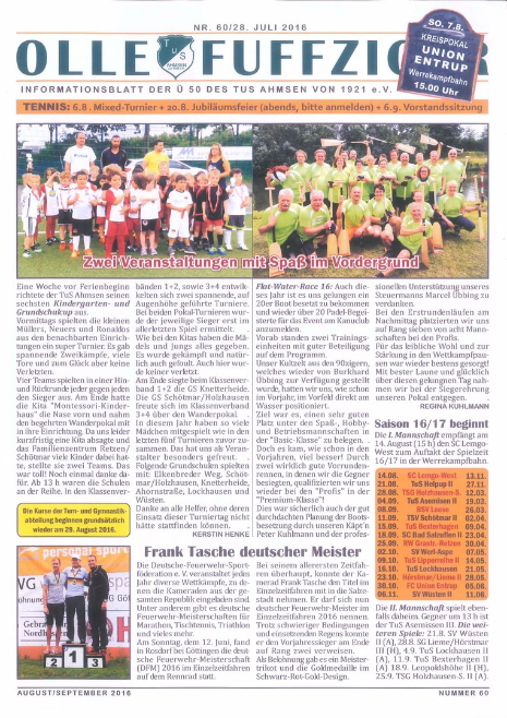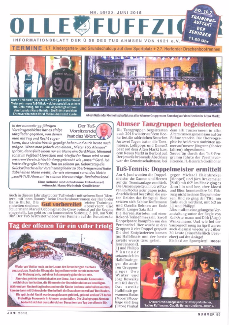 Olle Fuffziger - Infoblatt zum Vereinsgeschehen